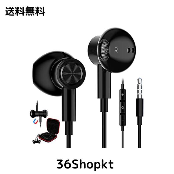 【新登場】イヤホン 有線 マイク付き 3.5mmジャック イヤフォン 磁気設計 PC パソコン用 ノイズキャンセリング重低音 対応iphone/6/6s/SE