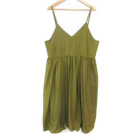 【中古】グローブ grove キャミソールワンピース ミモレ丈 Vネック 切替 無地 M カーキ /FF12 レディース