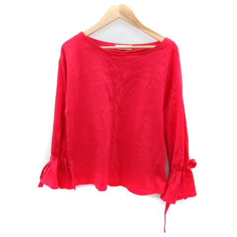 【中古】アクアガール aquagirl カットソー 長袖 ボートネック キャンディースリーブ 無地 リボン レッド レディース
