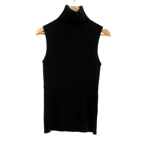【中古】ジルスチュアート リブニット カットソー ノースリーブ タートルネック 無地 ウール混 M 黒 レディース