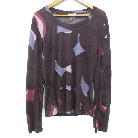 【中古】マレーラ カットソー Tシャツ 長袖 ラウンドネック シースルー 総柄 ウール混 L 茶 黒 ブラウン レディース