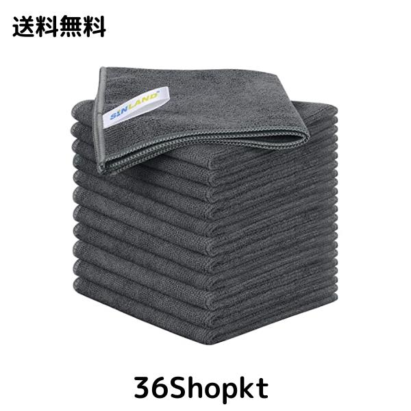 SINLAND マイクロファイバー クリーニングクロス 業務用タオル キッチン 掃除 洗車 吸水 速乾 クロス 12枚入 グレー