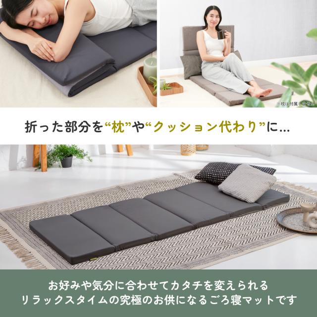 リラックスgoroneマット 6つ折りタイプ 約65×170cm 折りたたみ ごろ寝マット 高反発ウレタン ウレタンマット お昼寝 コンパクト 収納 持ち運び 軽量 洗えるカバー 高反発マットレス