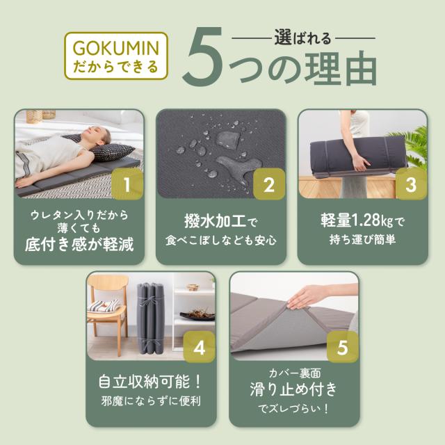 GOKUMIN ゴクミン ごくみん ごろ寝マット お昼寝マット マットレス アウトドア キャンプ 車中泊 防災用 軽量 コンパクト 撥水加工 滑り止め