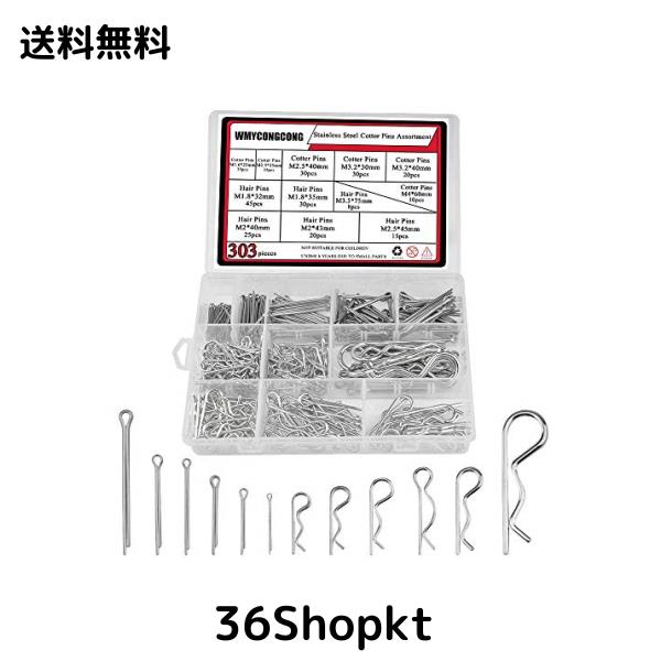 ◆商品名:WMYCONGCONG 12サイズ 303個セット ステンレス鋼コッターピン割りピンキット 割りピン品揃えキット + 亜鉛メッキ鋼Rピン スナップピンフ