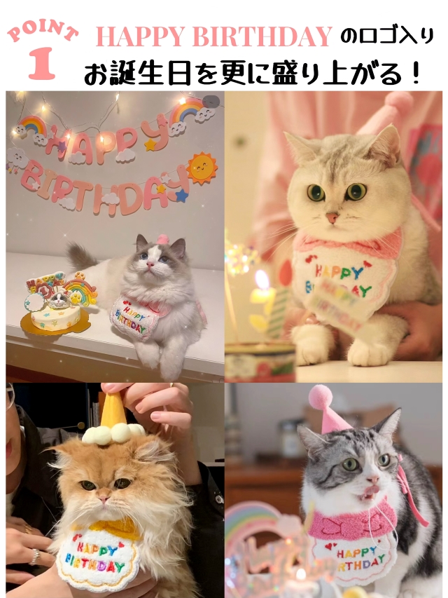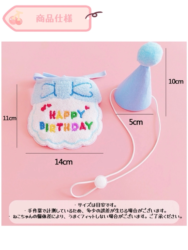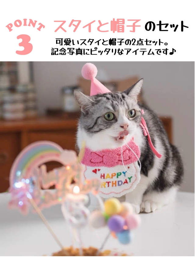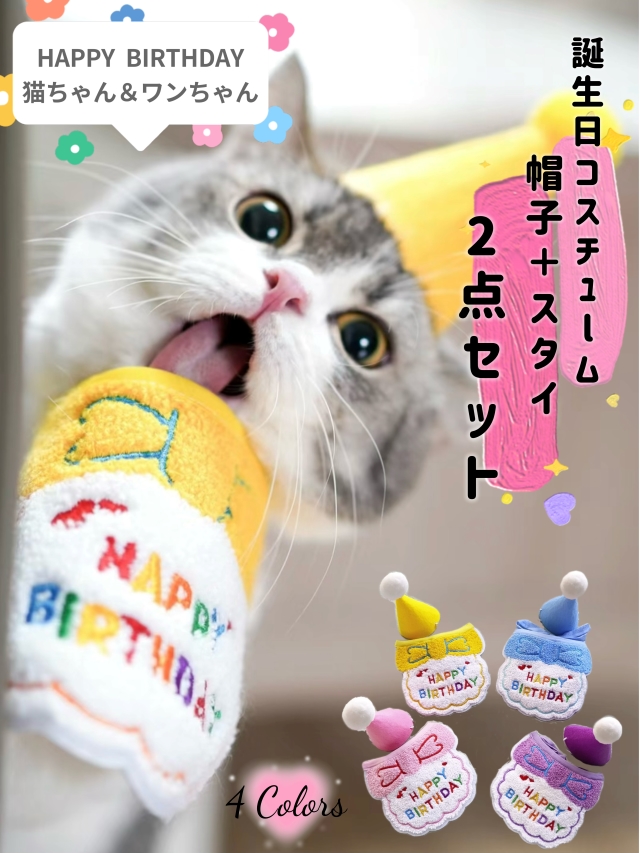 帽子と前掛けがセットになったペット用誕生日グッズです。