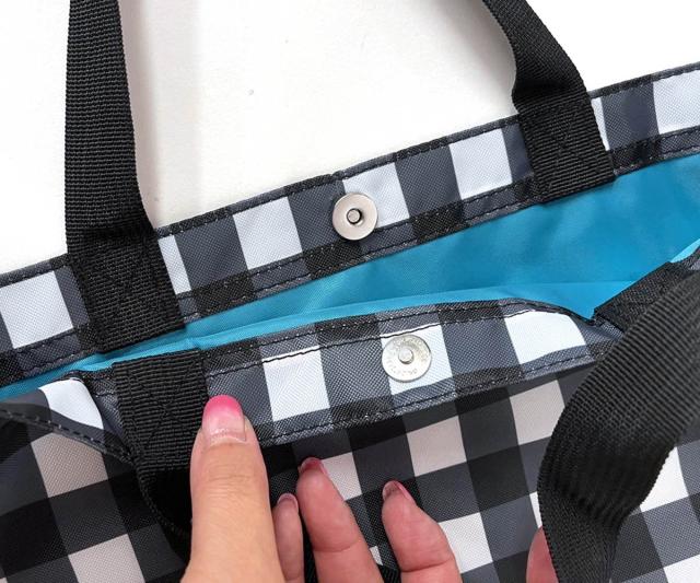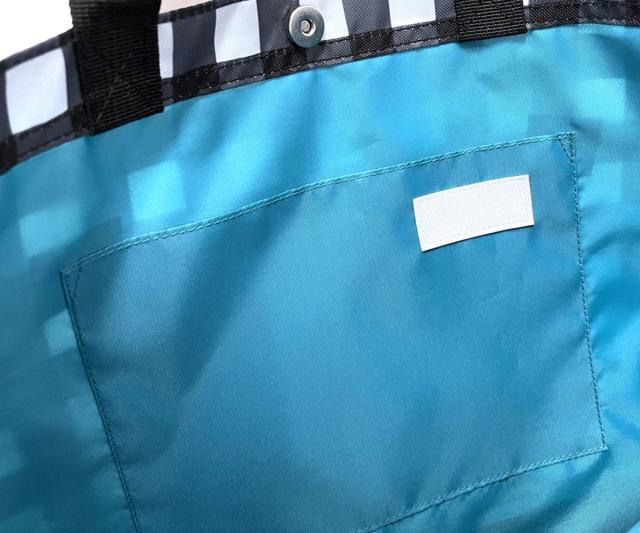 内側のポケットには、ポケットティッシュやハンカチ、小物類を分けて入れておくことができます。ネームテープ付きで、忘れがちな記名もばっちりです。