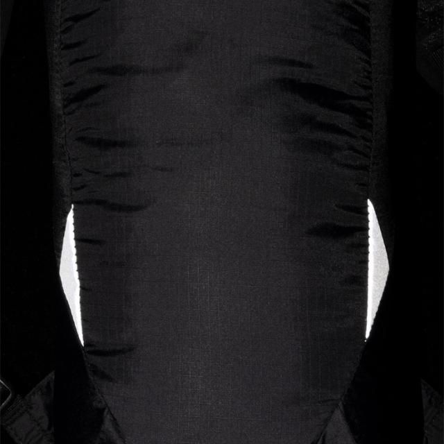 背面とショルダーハーネスには通気性に優れる軽量エアメッシュを配置。