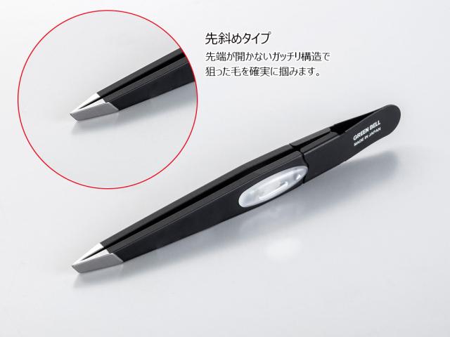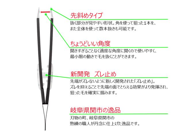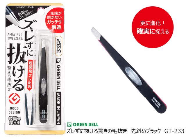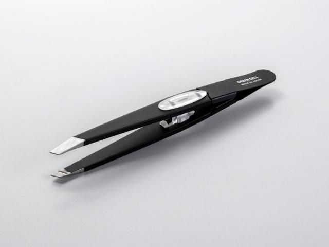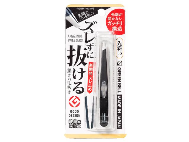 ズレない 毛抜き 先斜め ガッチリ構造 日本製 特許取得「ズレずに抜ける驚きの毛抜き 先斜め ブラック GT-233」