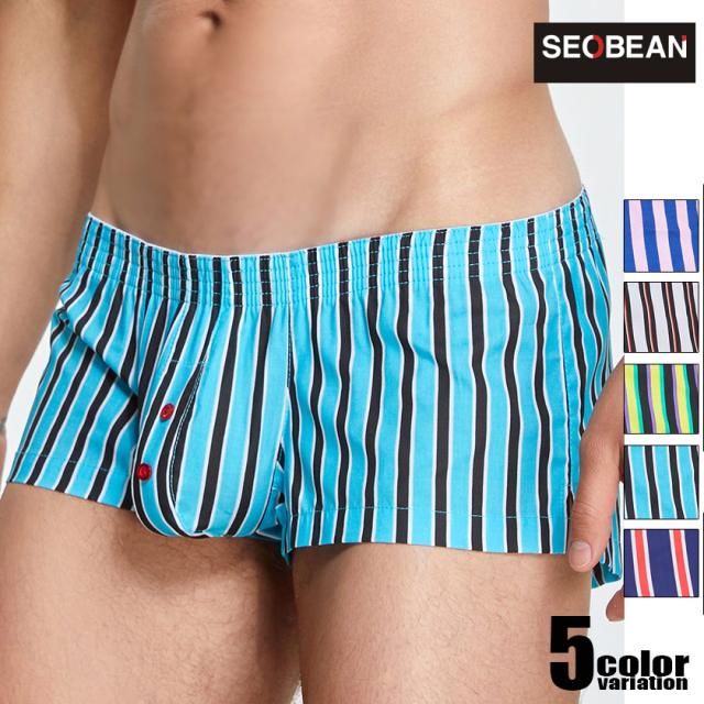 SEOBEAN/セビン STRIPED FIT TRUNKS ストライプ柄 ショートトランクス モッコリ 前開き コットン 綿 立体縫製 トランクス 男性下着 メンズ パンツ ゆったり リラックス バレンタイン2024 プレゼント