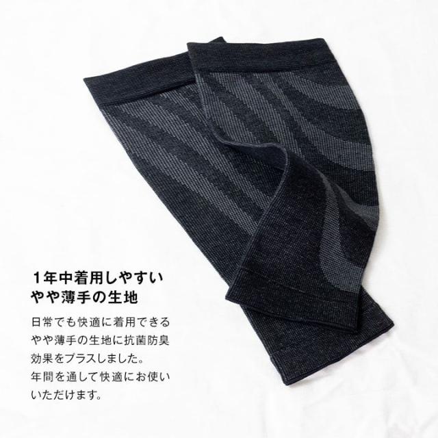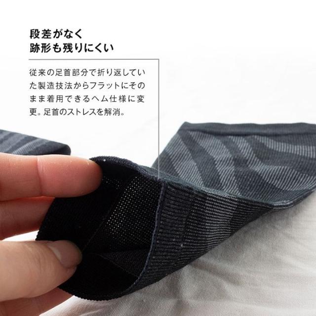 やさしい履き心地の綿混素材。ふくらはぎに溜まる血液・水分(尿のもと)を流すことで、脚の不快感の解消だけでなく、夜間頻尿対策への効果が期待されるとして注目されています。