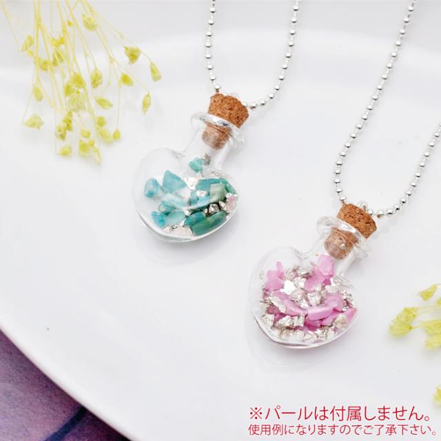 ネックレス ガラス小瓶 ハート コルク付き | 小瓶 ガラス コルク ハート 手作り レジン ネックレス 材料 UVレジン ネックレス デザイン ハンドメイド 手芸 アクセサリー 素材 パーツ ピアス イヤリング