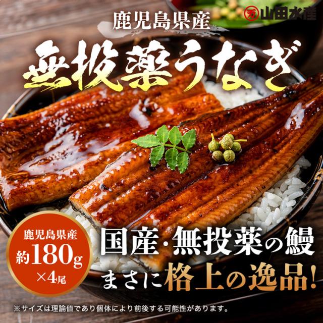 うなぎ 鰻 国産 無投薬 約180g × 4尾 鹿児島県産 ウナギ 蒲焼き 山田水産 ギフト プレゼント 食品 クーポン の日 ギフト プレゼント
