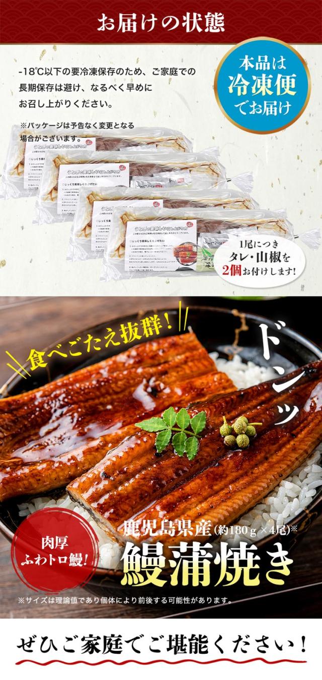うなぎ 鰻 国産 送料無料 無投薬 約180g × 4尾 鹿児島 ウナギ 蒲焼き 土用丑 山田水産 冷凍 真空パック 食品 土用丑 土用 丑の日 unagi プレミアム プレゼント 夏ギフト 母の日 ギフト プレゼント