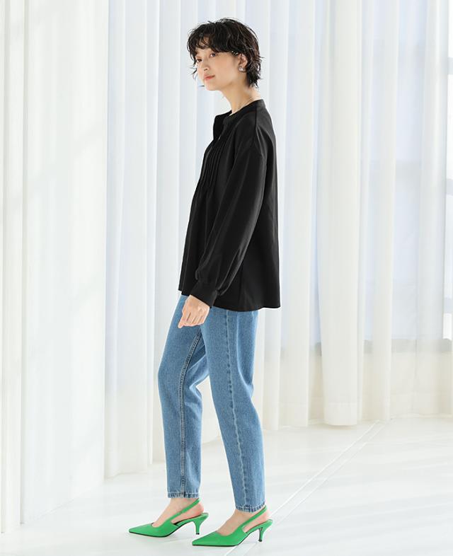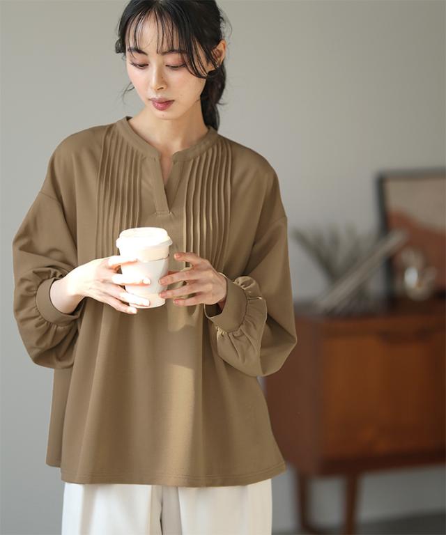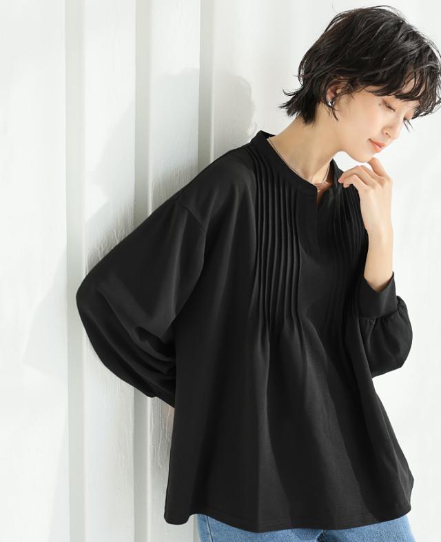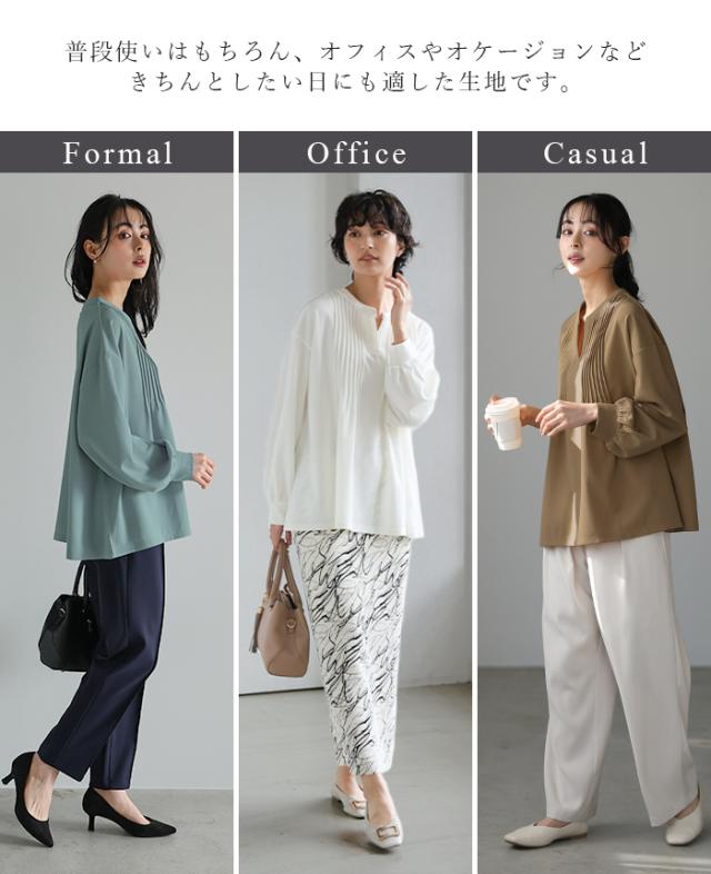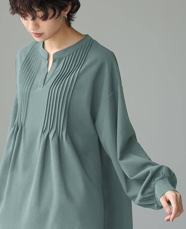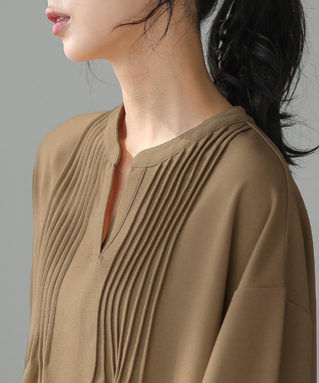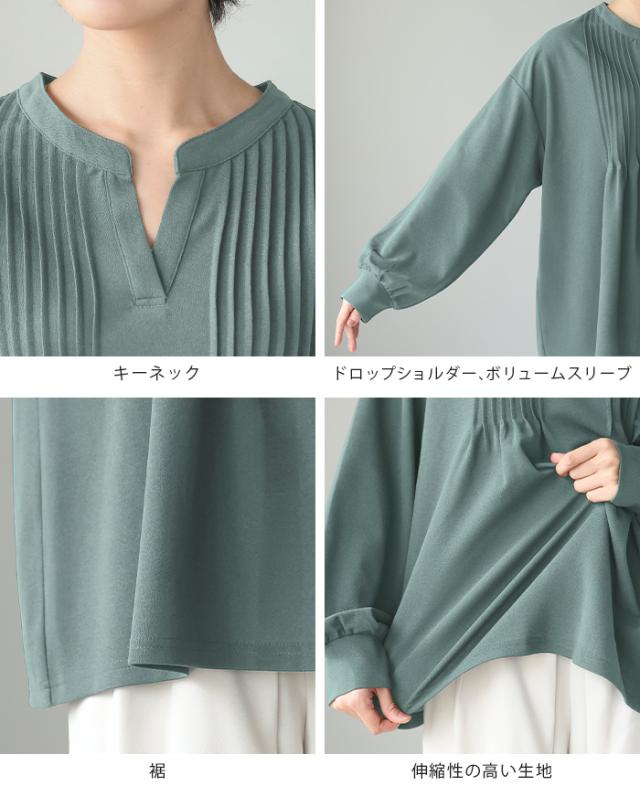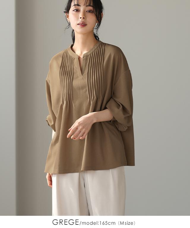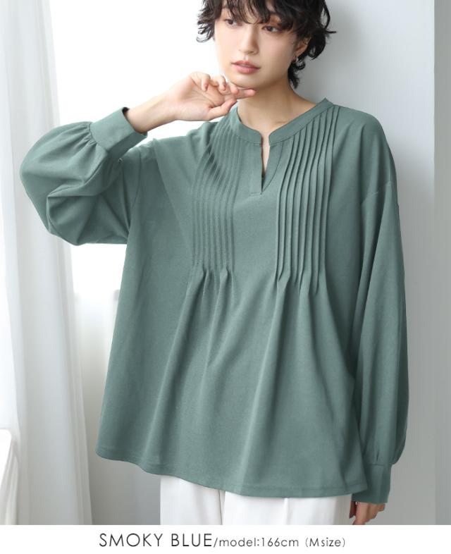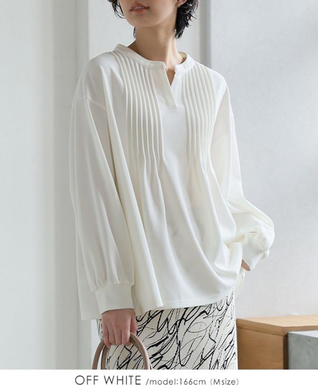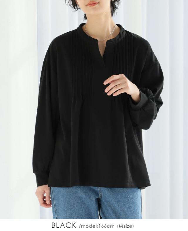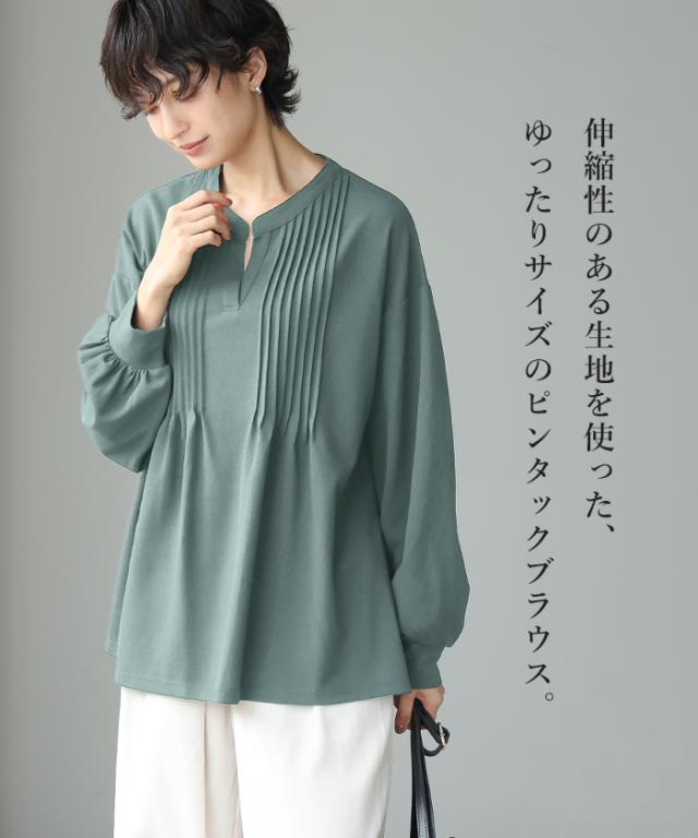 梨地ピンタックブラウス プルオーバー ピンタック スキッパー トップス【メール便不可】