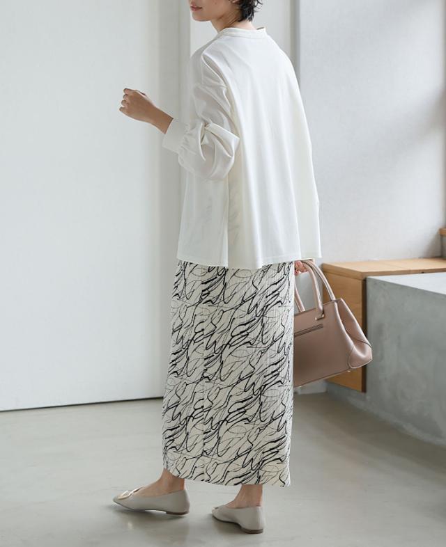 ■Attention ※ご覧になるモニターや環境により実際の商品と色味が異なる場合がございます。予めご了承ください。 ※実寸サイズは平置きメジャー採寸のため若干の誤差が生じる場合がございます。 ※お取り扱い・お洗濯につきましては、付属の商品タグをご使用前に必ずご確認下さい。 ※濃色の商品は色落ち・移染する可能性がございますので、お取り扱いにはご注意下さい。 ※繊維製品のため、同じ商品であっても生産時期やカラーによって伸縮率・生地感・色味が多少異なる場合がございます。特にニット製品に関してはプレス・洗い加工等で5cm前後の誤差が生じる場合がございます。 これらは品質上問題はございません。予めご了承下さい。 ■Staff comment AI/身長:154cm(普段のサイズ:M-L) 体型:骨格ストレート 全体的に厚みのある、産後体型。 トップスはMサイズを選ぶ。 ウエストと腰回りが大きく、ボトムはLサイズを選ぶこともあります。 【着丈】M:ヒップ下2cm。 L:ヒップ下3cm。 【袖丈】M:伸ばすと指先が見えて、袖口は手の甲で止まる。 L:伸ばすと指が隠れて、袖口は手の甲で止まる。 【一言コメント】 ゆったりとしたシルエットで、体のラインが出ません。 AYA/身長:158cm(普段のサイズ:M) 体型:骨格ウェーブ 上半身筋肉質の標準体型。肩幅は広くバストは平均。 ウエストは細くヒップが大きいので、 ヒップに合わせてボトムは選びます。 【着丈】M:ヒップ下ぐらい。 L:ヒップ下1cm。 【袖丈】M:伸ばすと親指の付け根で、袖口は手の甲で止まる。 L:伸ばすと指の付け根で、袖口は手の甲で止まる。 【一言コメント】 屈むと胸元が見えるので、インナーは必須です。 RISA/身長:165cm(普段のサイズ:L-LL) 体型:骨格ナチュラル 体に厚みがあるやや痩せ型。 バスト・ウエスト・ヒップは標準ですが、 肩幅が広くて腕が長め、ふくらはぎは筋肉質。 身長が高いため普段Lサイズを選びます。 【着丈】M:ヒップ2/3ぐらい。 L:ヒップ半分ぐらい。 【袖丈】M:伸ばすと手の甲半分で、袖口は手の甲で止まる。 L:伸ばすと手の甲半分で、袖口は手の甲で止まる。 【一言コメント】 ゆったりしていますが、胸元のピンタックでスッキリ見えます。 |