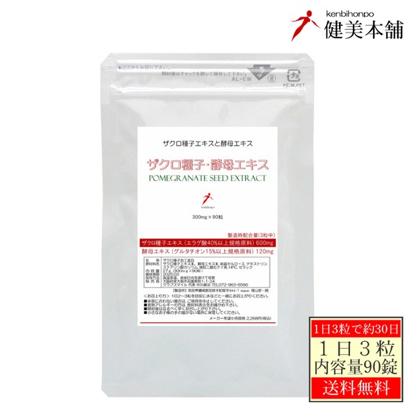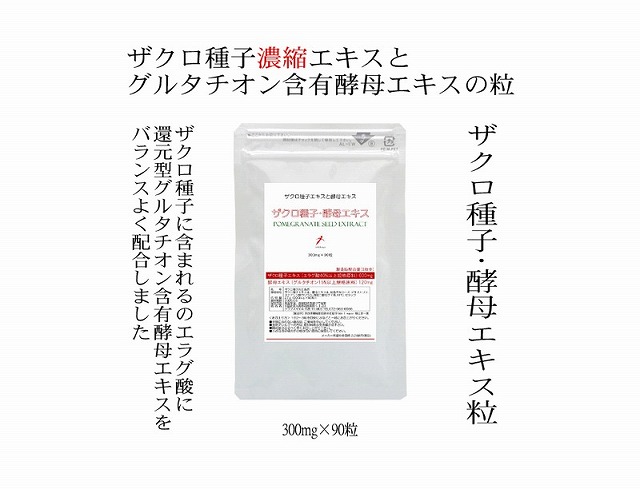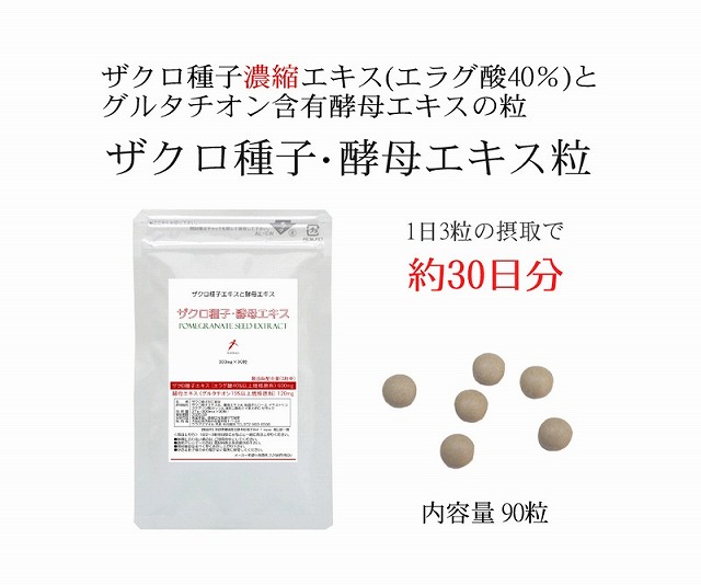 ザクロ種子エキス (エラグ酸40%)+グルタチオン含有酵母エキスの粒 ザクロ種子・酵母エキス粒 300mg×90粒 約30〜45日メール便無料