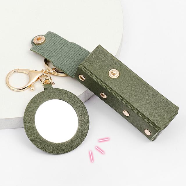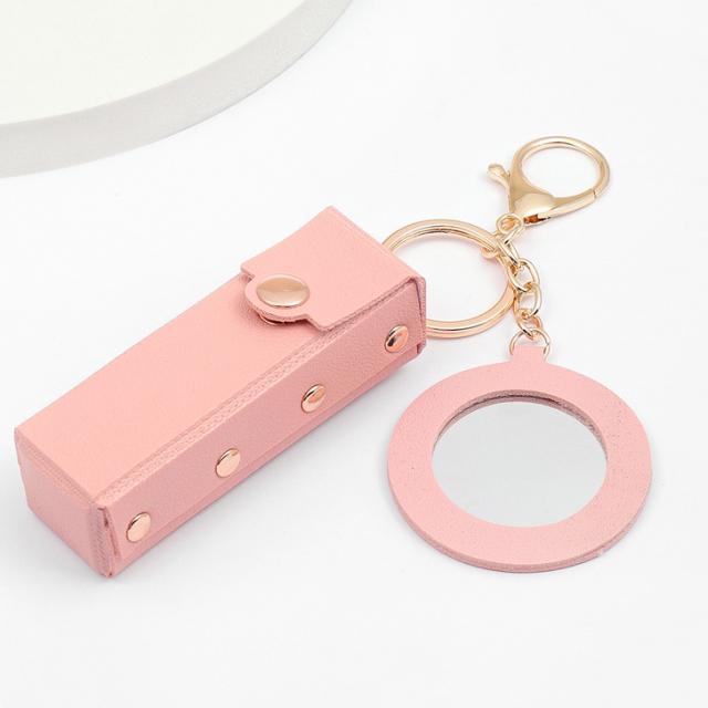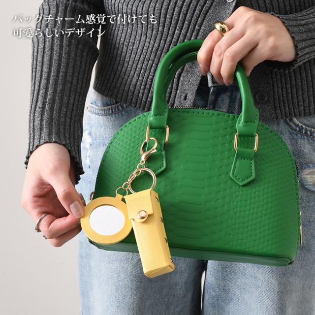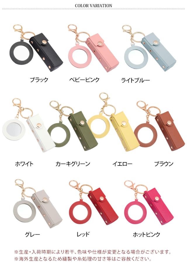 新作 リップケース ミラー付き フェイクレザー 鏡付き キーホルダー ポーチ 小物入れ メイク 化粧 口紅 レディース おしゃれ 携帯 小さめ