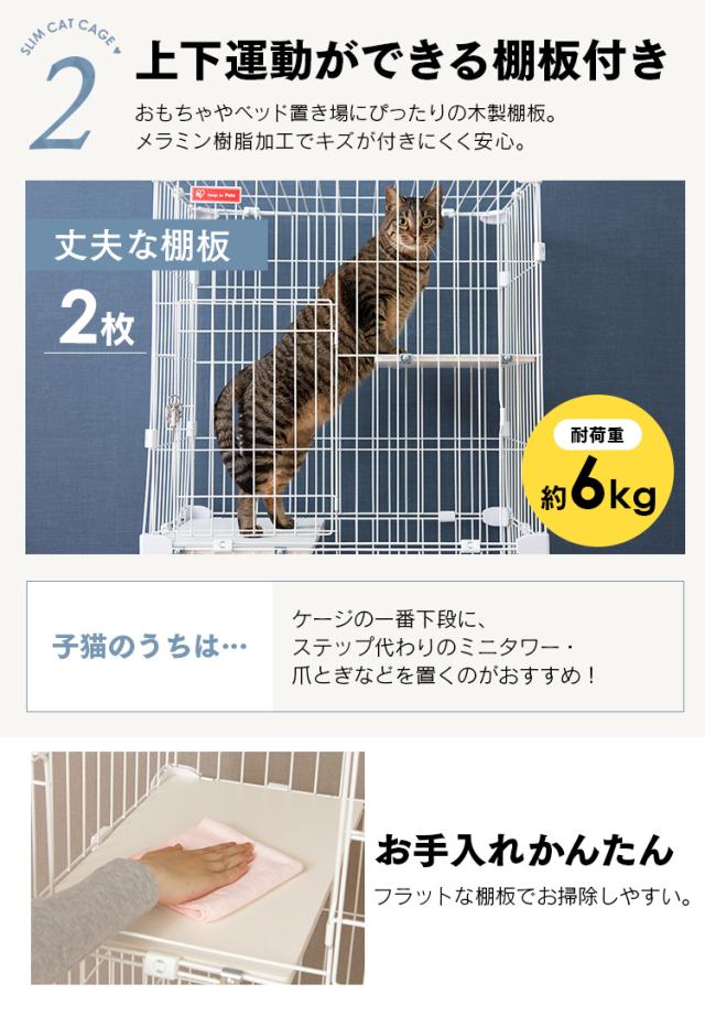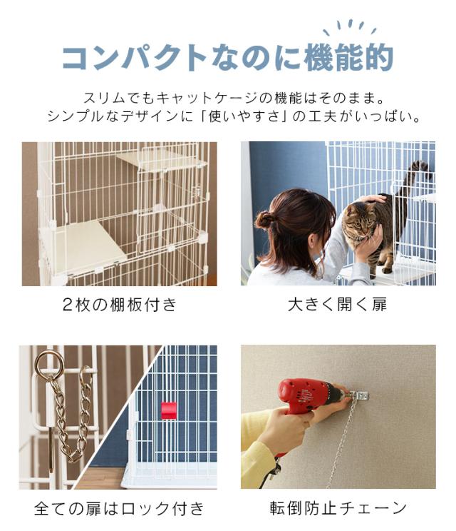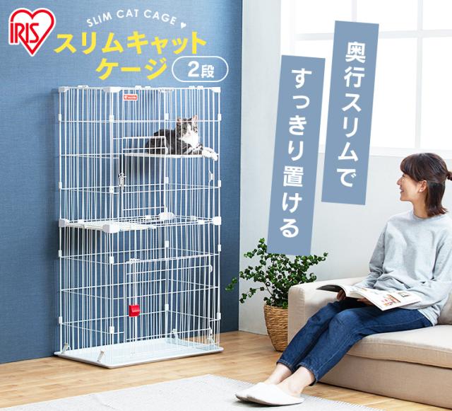 猫 ケージ 2段 猫 ゲージ スリム 猫ケージ 2段 二段 省スペース 多頭飼い スリムキャットケージ2段 PSCC-752 アイリスオーヤマ スリムケージ 子猫 組立 簡単 転倒防止 チェーン付 脱走防止