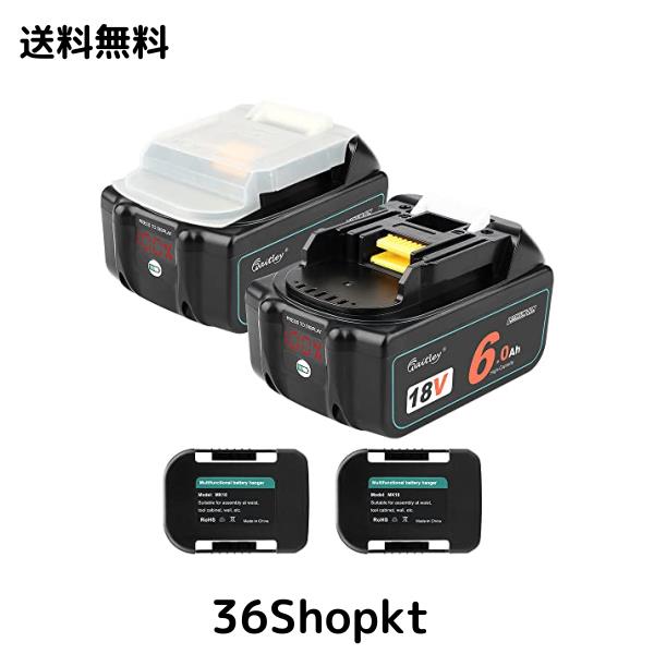 waitley互換マキタ 18V バッテリー 2個セットLED%残量表示付き バッテリーホルダー付きBL1860B BL1830 バッテリー 6000mAh 大容量 PSE認