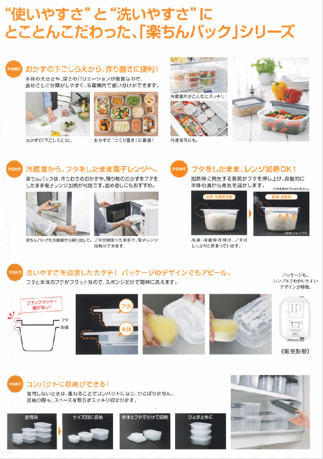 使いやすさ 洗いやすさにこだわった 楽ちんパック 保存容器