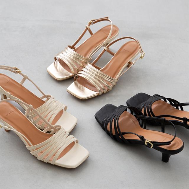 新しい春夏のストリングサンダルは、細めのストラップが特徴的で、足元を華やかに演出