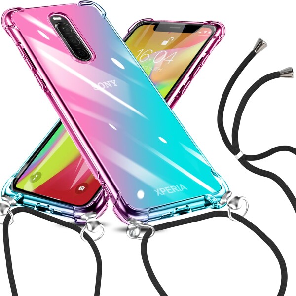 Xperia 1 ケース グラデーション色 SO-03L SOV40 ケース 肩掛け 斜めかけ クリア TPU 耐衝撃 エクスペリア 1 カバー ストラップ付き 透明 お洒落 ショルダー ス 一体型 落下防止 防塵 変形防止 全