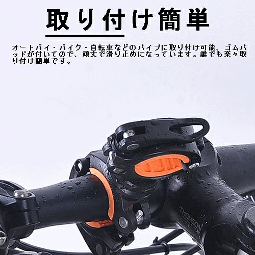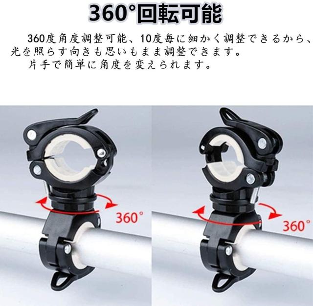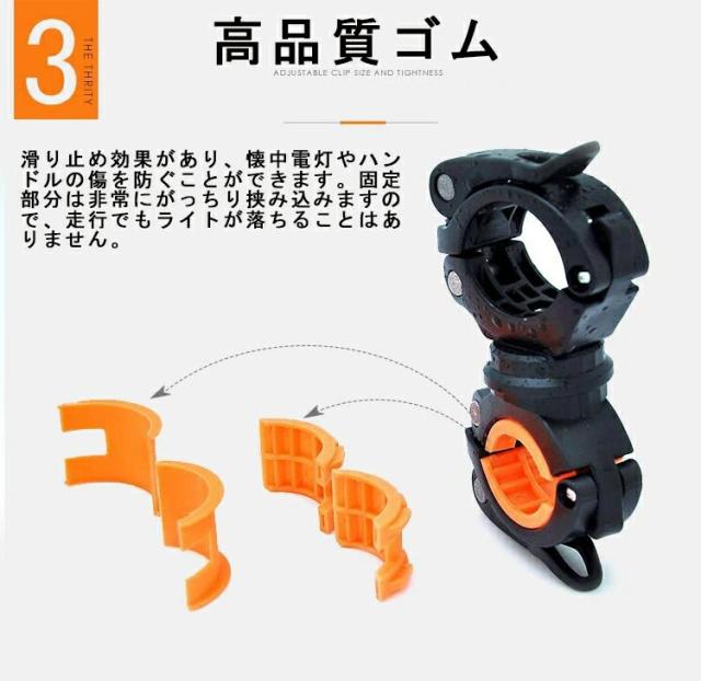 ライトホルダー 自転車 懐中電灯ホルダー ライトステー ライトブラケット ラバーバンド ラバーマウント 360度回転