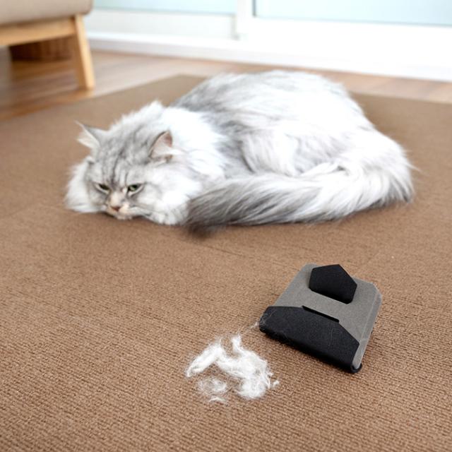 軽い力でこするだけで、タイルマットやカーペット、布ソファについたペットの毛を集めて取ることができます。