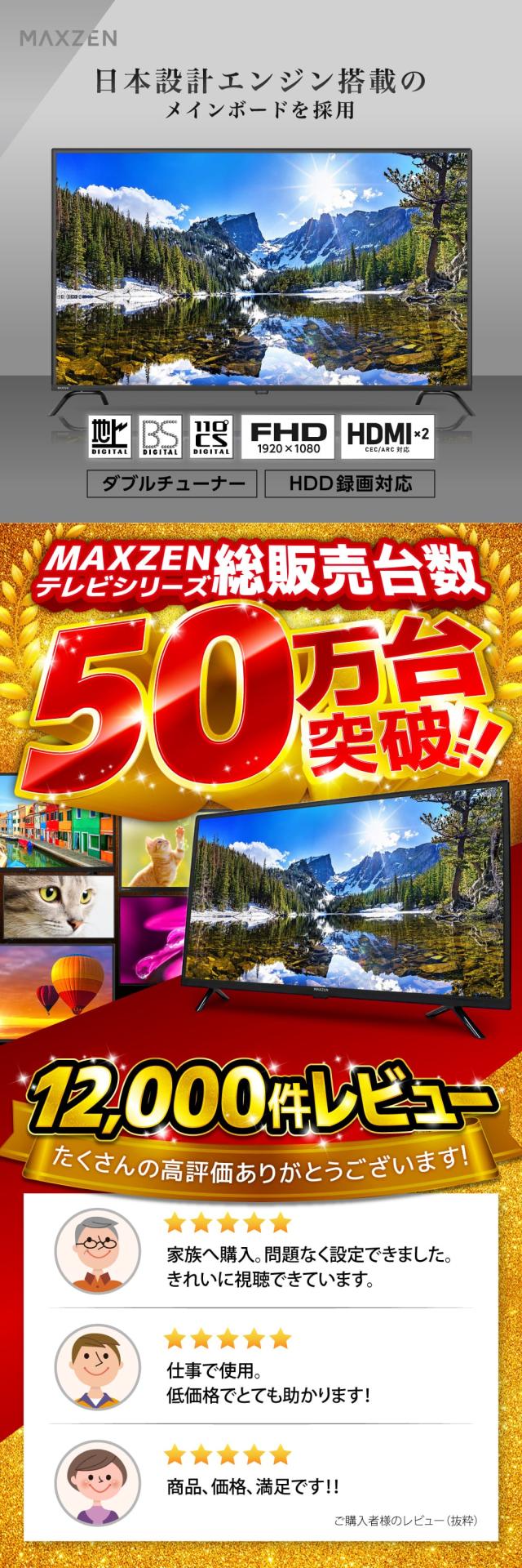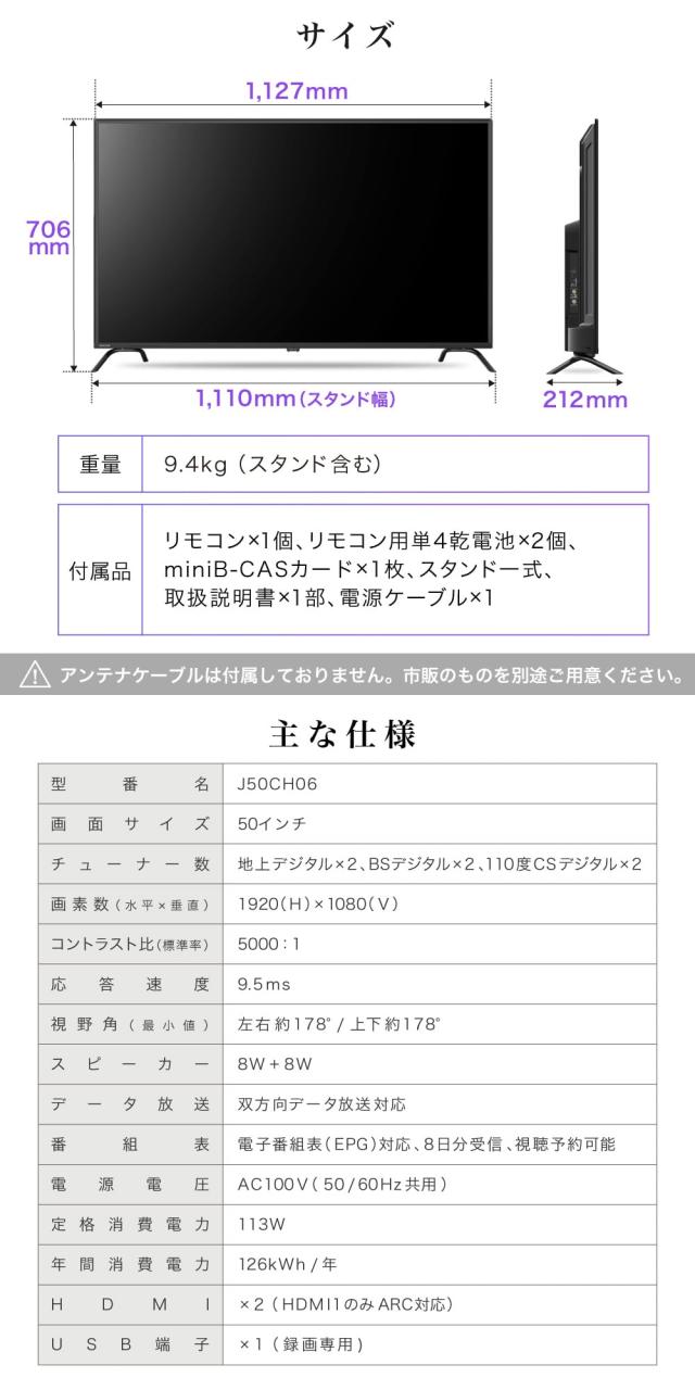 テレビ 50型 液晶テレビ フルハイビジョン 50V 50インチ ゲームモード搭載 裏録画 外付けHDD録画機能 ダブルチューナー 新生活 J50CH06 マクスゼン