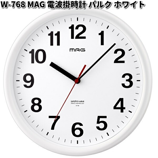 ノア精密 W-768 MAG 電波掛時計 パルク ホワイト W768【お取り寄せ商品】クロック 時計 掛け時計 掛時計 アナログ