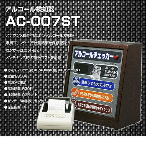 東洋マーク製作所 AC-007-ST プリンターセット アルコールチェッカー AC007【送料無料(沖縄・離島を除く)】【アルコール検査器/チェッカー/プリンター】【お取り寄せ商品】