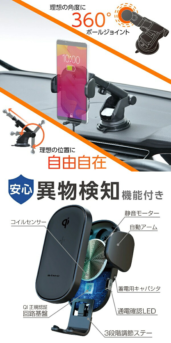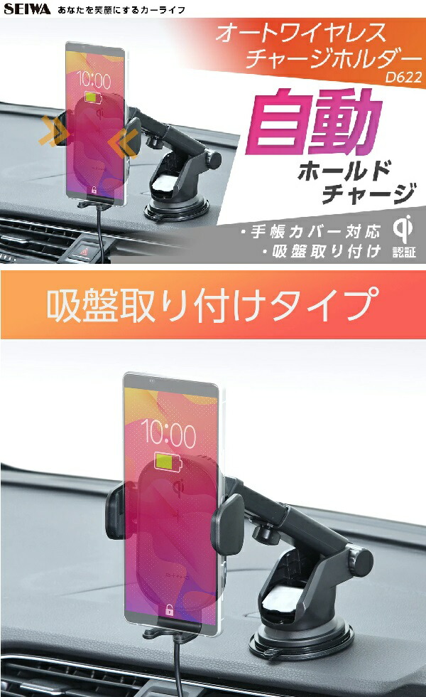 セイワ D622 オートワイヤレスチャージホルダー 吸盤 D-622【お取り寄せ商品】SEIWA カー用品 充電器 充電 無線 無線充電 無線充電器 スマートフォン iPhone