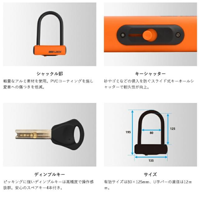 LEAD LU-208A アルミシャックルロック BEELOCK 12Φ 80×125mm スペアキー4本付 リード工業 LU208【お取り寄せ商品】バイク用品 U字ロック ロック カギ 鍵 施錠 盗難予防