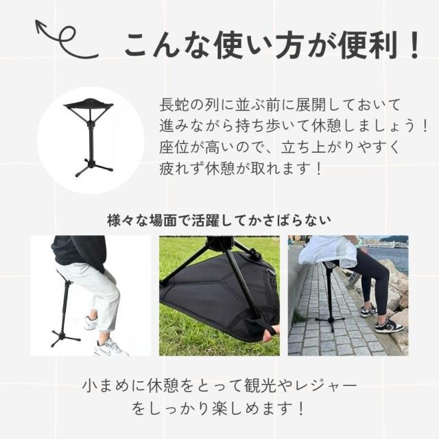 日本人の身長に特化して対応しており、立ったまま座れる高さでちょっと休憩を取りたい時や長時間立ちっぱなし仕事をしている人たちに最適な折りたたみ式ハイチェア。