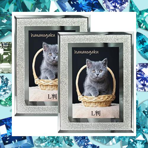 写真立て おしゃれ L版サイズの写真入り ガラス キラキラ フォトフレーム シンプル フォトディスプレイ 2枚セット 壁掛け不可
