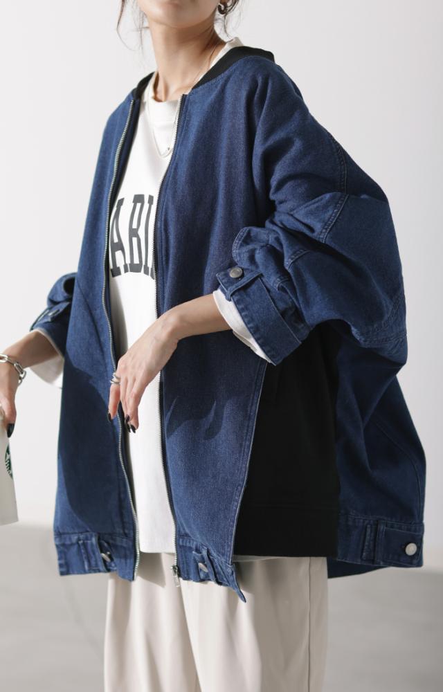変形 変形アウター ドルマン ドルマンスリーブ カジュアル ボリューム ビッグジャケット デニムアウター ジージャン 異素材ドッキング 異素材 ドッキング スエット ビッグシルエット ビックシルエット ビッグ ビック big 羽織り ジップ ドルマントップス ドルマンパーカー ドルマンシルエット バルーンシルエット チュニック丈 ドロップショルダー スプリング スプリングジャケット ビックサイズ ビック オーバーシルエット ジップアップ ジッパー ファスナー ストリート ジャンバー ジャンパー ヴィンテージデニム風 ヴィンテージ風 古着風 ユーズドデニム風 ユーズド風 ストリート系 ウォッシュデニム ウォッシュ おしゃれ オシャレ かっこいい カッコイイ 格好いい シャツ デニムシャツ デニムブルゾン コート 抜き襟 ポケット ポケット付き 切り替え 切り替えデザイン 襟 ステッチ ルーズ ヴィンテージ加工 ユーズド加工 ユーズド ユーズドデニム ヴィンテージ ビンテージ ゆる ゆったりサイズ ゆるカジ ゆるい ゆるファッション メンズライク メンズ ラクチン らくちん 楽ちん 楽 動きやすい ランチ デート お出かけ キャンプ アウトドア フェス 旅行 飛行機 ワーク系 スゥエット ルームウエア ワンマイルウエア ミディアム丈 部屋着 あたたかい あったか あったかい 温かい 暖かい ブラック 黒 黒色 ブラックデニム ブルー デニムブルー ウォッシュブルー ワンウォッシュ インディゴ 青 青色 紺色 紺 藍色 藍 冷え性対策 冷房対策 冷え性予防 日焼け対策 レディースファッション 旬 トレンド レイヤード 重ね着 重ね レイヤードコーデ 体型カバー プラスサイズ オーバー 着痩せ 大き目 大きい 大きめ フリーサイズ フリー S M L LL 2L XL 3L XXL LLL カジュアル ナチュラル ベーシック オフィス オフィスカジュアル テレワーク リモートワーク リモート オンライン飲み会 おうち時間 お家時間 着回し 母の日 プレゼント ギフト 贈り物 クリスマス シンプル 大人 大人カジュアル オトナ 女性 綺麗 綺麗目 きれい キレイ キレイめ キレイメ きれいめ 高見え 上質 上品 20代 30代 40代 50代 可愛い かわいい カワイイ 春 夏 秋 冬 春夏 秋冬 HUG.U HUGU ハグユー はぐゆー