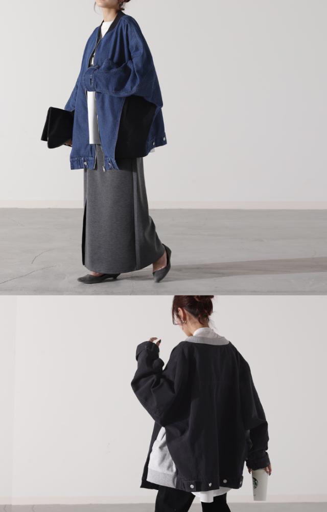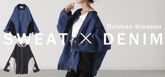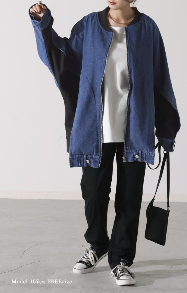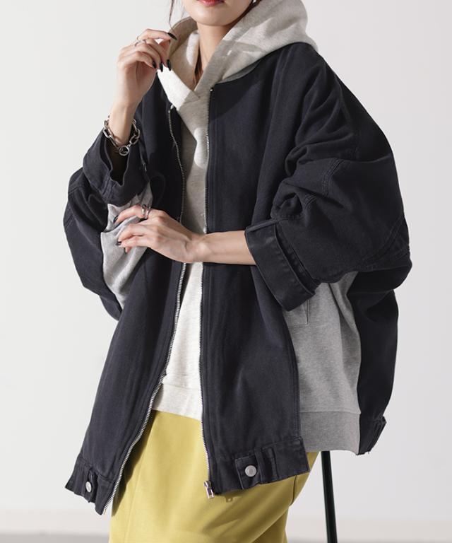 カットソーとの切り替えでドルマンシルエットのこなれ感あるデニムブルゾンです。