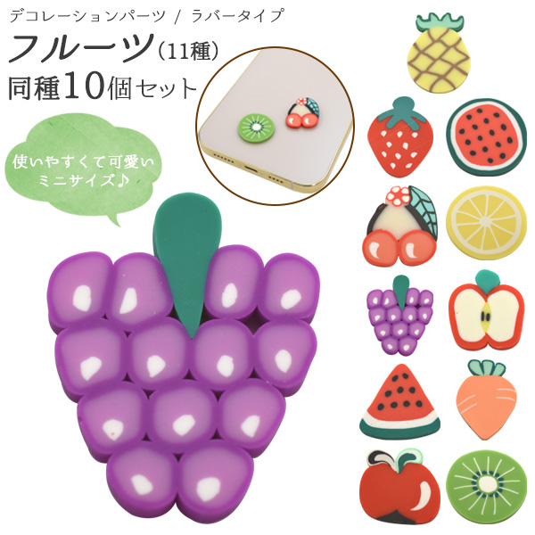 デコレーションパーツ フルーツ(ラバータイプ 11種)10個セット