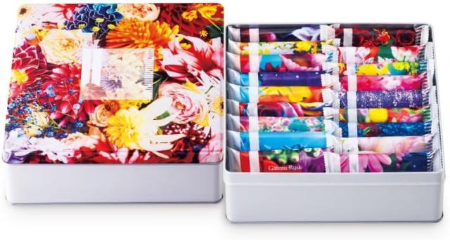 パッケージにアーティスト蜷川実花氏の写真作品をあしらった、花より華やかな装いのガトーラスク「グーテ・デ・ロワ」。 テーブルに花が咲き乱れる優雅なティータイムをお楽しみください。お祝いの贈り物にも最適です。