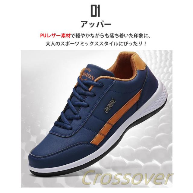 01アッパー:PUレザー素材で軽やかながらも落ち着いた印象に、大人のスポーツミックススタイルにぴったり!