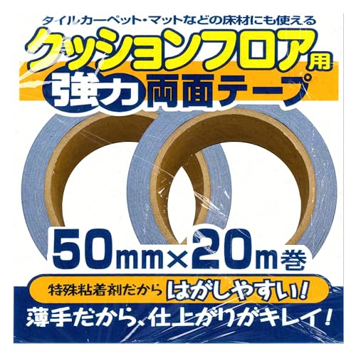 クッションフロア 両面テープ 幅5センチ×20m巻 (12畳 〜 16畳用) クッションフロアマット/タイルカーペット 専用両面テープ 2巻セット /