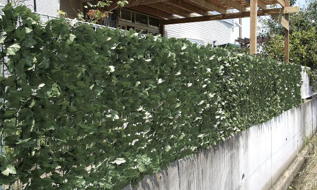 ●見た目スッキリ美しく魅せる!UVカット加工で、機能性もデザイン性もバッチリなエクステリア♪お庭・テラス・フェンス・外壁などの目隠しとして、とってもオススメな目隠しグリーンフェンス。なんといっても、設置するだけで見た目もオシャレで明るくなる。重々しい壁や塀などとは異なり、外観を自然に隠すことができる。また本物の植物ではないので、もちろん枯れないし、虫だって寄ってきない。そして通気性は抜群!そよそよと風を通し、とっても涼しく爽やか ●汚れた場合は水をかけるなどして軽く洗い流してください。格子部はポリエチレン樹脂なので、お好みでカットも可能