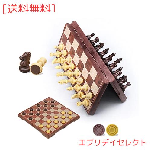 KOKOSUN 2 in 1 チェス/チェッカーセット マグネット式 ゲームセット 折りたたみ盤 携帯便利 (チェス+チェッカーセット)