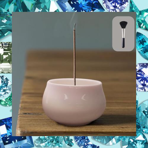 【セット内容・寸法】香炉+香立て(お香は含まれておりません)、灰掃除用ブラシ×1本 材質:香炉/陶器製、香立て/真鍮製 香炉のサイズ(約):高さ4.2cm、口径5cm、幅員6.8cm 香立てのサイズ(約):高さ1cm、幅2cm 香立ての穴の直径は、約2.0mm、2.5mm、3.0mm ※直径3.0mm以下のお香にお使いいただけます。