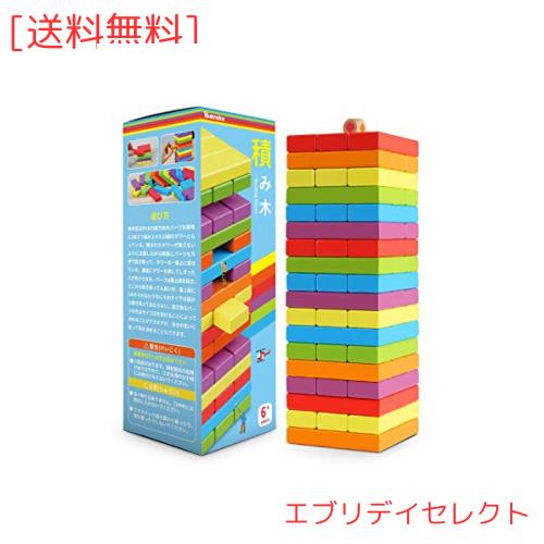 Homraku 木製バランスゲーム 立体パズル ボードゲーム 積み木ブロック ドミノブロック テーブルゲーム (6カラー, 54PCS)6歳以上