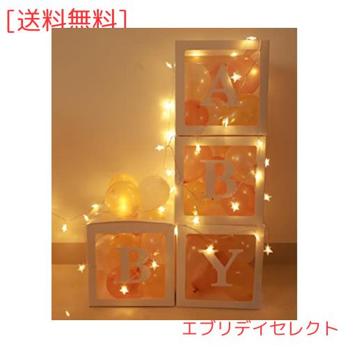 バルーンボックス サプライズバルーンパッケージ 26文字のA-ZとBABY USBスターライト パーティーの装飾 透明バルーンボックス 4個 ホワイ