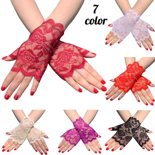 手袋 グローブ 指なし レディース ショート丈 総レース シースルー 透け感 バラ柄 花柄 女性用 フィンガーレス 指無し おし