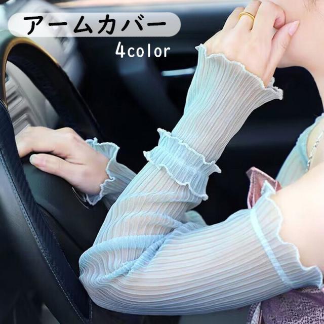 アームカバー 腕カバー レディース 手袋 ロング プリーツ レース 薄手 涼しい UV対策 日焼け防止 フリル チュール 運転