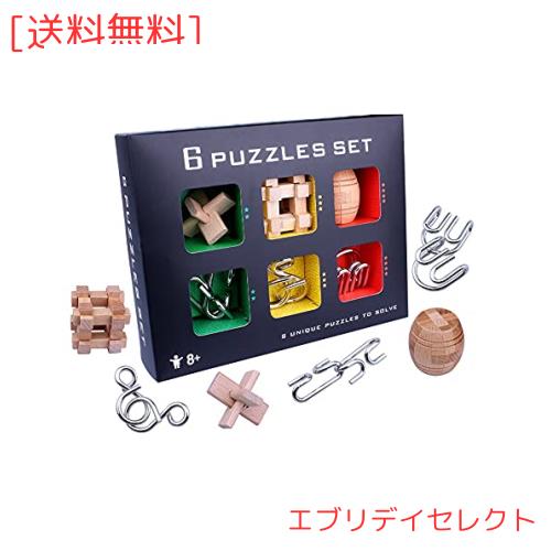 【パズルセット】知恵の輪*3+孔明パズル*3、一組の部品を繋げたり外して、また元の形に組み立てる。もっと遊んでみて、もっと奥妙を研究してください。能力を高めるだけではなく、手と脳を使い、知能と想像力を開発します。